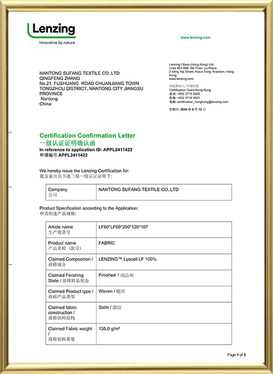 Certifikát Lenzing tencel